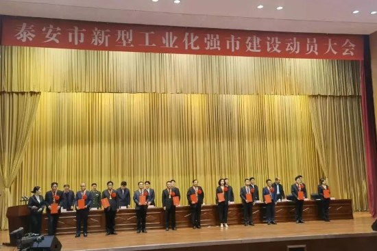 3月9日,泰安市新型工業(yè)化強市建設(shè)動員大會隆重召開。泰山燃?xì)饧瘓F(tuán)黨委書記、董事長單保華同志獲評“泰安市行業(yè)領(lǐng)軍企業(yè)家”,受到大會表彰。