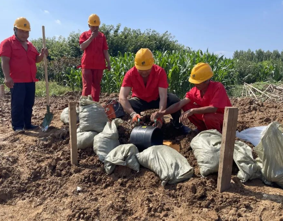 隨著集團于總下達演練開始指令,搶險隊員按照應急搶險預案,分工明確,各負其責,立即分為搶險救援組、檢測警戒組、醫(yī)療救護組立即開展搶險工作。在十幾分鐘的演練過程中,參于人員在烈日下披荊斬棘、汗流浹背、忘我作業(yè),經過人員疏散、現場戒備、停氣置換檢測、砸樁堆砌沙袋穩(wěn)固管線、切割受損管段、焊接替換管件、掩埋燃氣管線等十幾道搶險工序作業(yè),最終順利完成了本次搶險演練任務,達到“以訓代練”的目的要求。