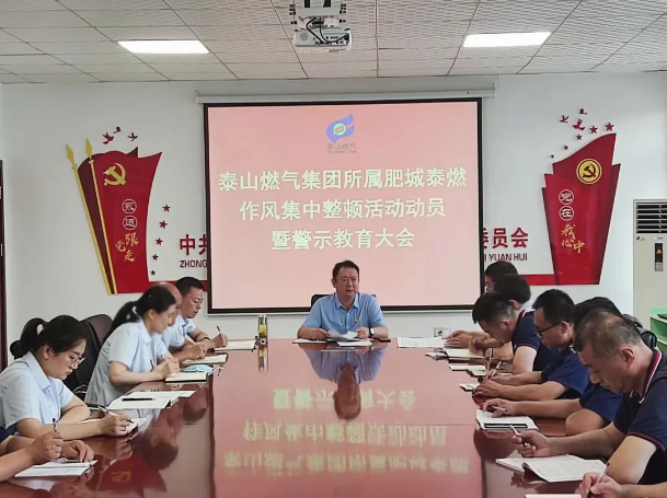 8月2日下午,按照泰山燃?xì)饧瘓F(tuán)黨委關(guān)于作風(fēng)集中整頓活動(dòng)部署要求,東平泰燃黨支部立即召開(kāi)動(dòng)員部署暨警示教育會(huì)議,公司中層副職及以上領(lǐng)導(dǎo)干部參加。會(huì)議組織集中觀看警示教育片《零容忍》;傳達(dá)全市機(jī)關(guān)、城建集團(tuán)及泰山燃?xì)饧瘓F(tuán)作風(fēng)集中整頓活動(dòng)動(dòng)員暨警示教育大會(huì)精神;學(xué)習(xí)中共泰安市委辦公室印發(fā)《關(guān)于實(shí)行“三曬一評(píng)一公開(kāi)”完善干部經(jīng)?疾炀珳(zhǔn)畫(huà)像分類管理的實(shí)施意見(jiàn)(試行)的通知》、《泰山燃?xì)饧瘓F(tuán)黨委作風(fēng)集中整頓活動(dòng)實(shí)施方案》;最后,由公司支部書(shū)記、總經(jīng)理潘雷作動(dòng)員部署講話,提工作要求:公司全體黨員干部要提高站位,認(rèn)真貫徹落實(shí)好集團(tuán)黨委部署精神,切實(shí)把思想和行動(dòng)統(tǒng)一到各級(jí)黨委決策部署上來(lái),統(tǒng)一到作風(fēng)集中整頓中來(lái),確;顒(dòng)抓出特色,抓出實(shí)效,結(jié)合當(dāng)前工業(yè)化強(qiáng)市、“樹(shù)國(guó)企形象,扛國(guó)資責(zé)任”、優(yōu)化營(yíng)商環(huán)境實(shí)踐行動(dòng),樹(shù)立泰山燃?xì)獾牧己眯蜗,以過(guò)硬作風(fēng)推動(dòng)集團(tuán)大局工作高質(zhì)量發(fā)展和黨的二十大的勝利召開(kāi)。