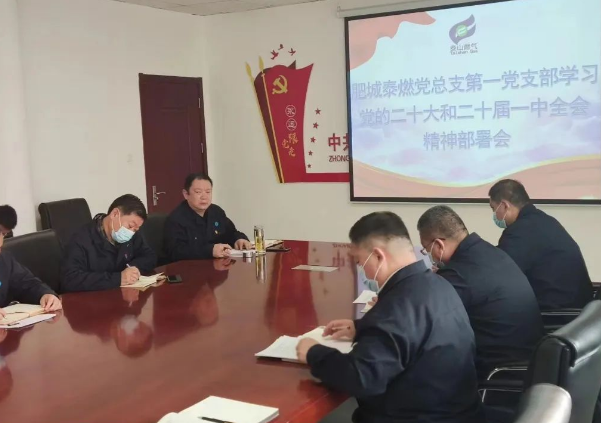 11月4日上午,泰山燃?xì)饧瘓F(tuán)所屬肥城泰燃各支部分別召開學(xué)習(xí)宣傳貫徹黨的二十大精神部署會(huì)。會(huì)議傳達(dá)了10月24日市委常委擴(kuò)大會(huì)議精神和集團(tuán)公司黨委學(xué)習(xí)宣傳貫徹二十大精神部署會(huì)暨理論中心組學(xué)習(xí)會(huì)議精神,公司總支書記、總經(jīng)理杜林同志對(duì)公司下一步開展學(xué)習(xí)宣傳貫徹工作作出了安排部署。