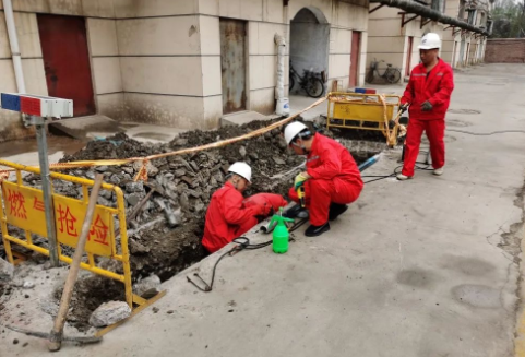 早上8點(diǎn),調(diào)度中心接到物資西區(qū)社區(qū)人員報(bào)警,稱發(fā)現(xiàn)樓前道路處有刺鼻味道,懷疑是天然氣泄漏。公司立即啟動(dòng)應(yīng)急搶險(xiǎn)預(yù)案,調(diào)度中心、維修搶險(xiǎn)隊(duì)、調(diào)壓處、安全管理處、客服中心等部門人員迅速響應(yīng),搶險(xiǎn)人員火速趕往現(xiàn)場(chǎng)進(jìn)行排查,經(jīng)排查發(fā)現(xiàn)樓后主管道發(fā)生泄露。搶險(xiǎn)人員立即關(guān)閉該段燃?xì)饪刂崎y門切斷氣源,避免燃?xì)庑孤┰斐纱紊鹿,并現(xiàn)場(chǎng)設(shè)置警戒帶、施工警示牌,及時(shí)引導(dǎo)群眾進(jìn)行疏散撤離,同時(shí)做好現(xiàn)場(chǎng)警戒及監(jiān)管工作;緊急處置到位后,安排專人對(duì)燃?xì)夤艿乐苓呥M(jìn)行監(jiān)護(hù),切實(shí)做好施工現(xiàn)場(chǎng)的安全防護(hù)措施。在對(duì)燃?xì)庑孤┓秶鷼怏w濃度檢測(cè)進(jìn)行檢測(cè),濃度達(dá)到搶修標(biāo)準(zhǔn)后,搶險(xiǎn)隊(duì)立刻進(jìn)行動(dòng)火搶修。搶險(xiǎn)隊(duì)員各司其職,反應(yīng)迅速,配合緊密,現(xiàn)場(chǎng)搶修處置緊張有序,置換保壓、定位開挖、管道搶修,整個(gè)過程一氣呵成,雨越下越大,搶險(xiǎn)隊(duì)員身上已分不清雨水與汗水。經(jīng)過近3個(gè)小時(shí)的搶修完成,物資西區(qū)恢復(fù)正常供氣。