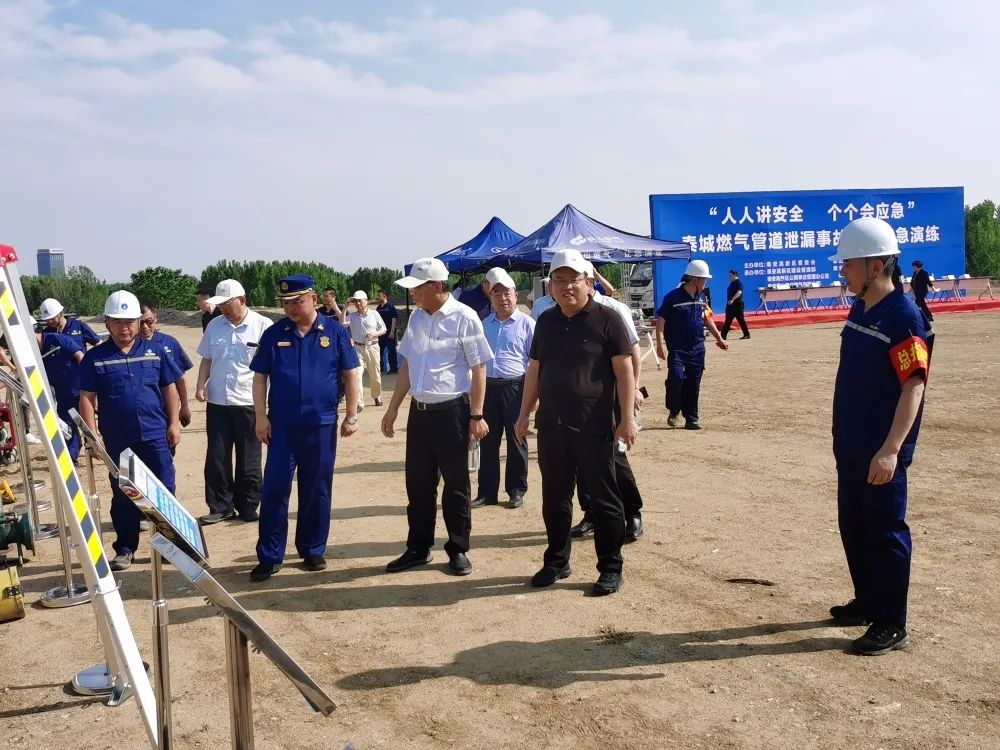 6月21日下午,泰山燃?xì)饧瘓F(tuán)與泰安高新區(qū)管委會(huì)聯(lián)合開展燃?xì)夤艿佬孤┦鹿示C合應(yīng)急演練,泰山港華公司作為承辦單位,聯(lián)合高新區(qū)建設(shè)管理部、高新區(qū)應(yīng)急管理部、高新區(qū)公用事業(yè)管理辦公室和高新區(qū)消防救援大隊(duì)模擬演練了燃?xì)庵鞲删因第三方施工破壞引發(fā)大量泄漏啟動(dòng)應(yīng)急處置預(yù)案的有效性。