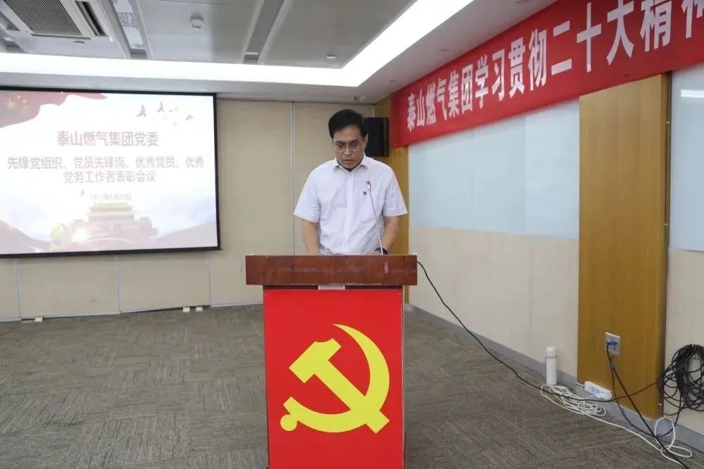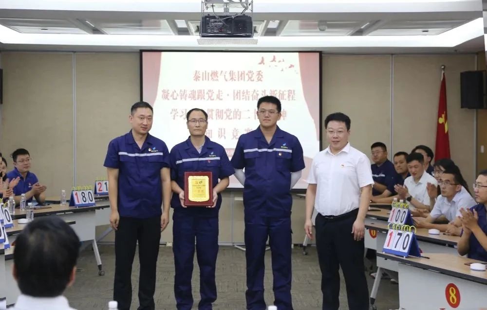 知識競賽結(jié)束后,集團(tuán)黨委對2022-2023年度先進(jìn)黨組織和優(yōu)秀黨員進(jìn)行表彰,授予泰山港華客服黨支部、東平泰燃黨總支、綠能公司黨支部“泰山燃?xì)庀蠕h黨組織”榮譽(yù),授予泰山燃?xì)饧瘓F(tuán)有限公司調(diào)度營銷部、道朗輸配分公司輸配運(yùn)行崗、斯菲克第二項(xiàng)目部等8個(gè)崗位“泰山燃?xì)恻h員先鋒崗”榮譽(yù),授予劉來慶、黃夏、王光明等41名黨員“優(yōu)秀共產(chǎn)黨員”榮譽(yù)稱號,授予馬德鋒、王厚偉、劉含宇等18名同志“優(yōu)秀黨務(wù)工作者”榮譽(yù)稱號。