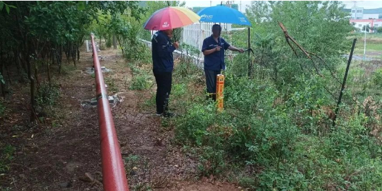 降雨初期,根據(jù)公司《汛期應(yīng)急處置預(yù)案》,管網(wǎng)運(yùn)行部全體人員立即出動(dòng),搶險(xiǎn)物資車輛提前配備到位,嚴(yán)陣以待。巡線人員根據(jù)各自負(fù)責(zé)區(qū)域,對(duì)城區(qū)主要路段、佛東路等易積水、易沖刷地段閥門井、管線、調(diào)壓設(shè)施、架空管支撐圍墻等進(jìn)行全面排查,對(duì)部分管位警示樁進(jìn)行加固,障礙物進(jìn)行清理,并做好防護(hù)。同時(shí)帶班領(lǐng)導(dǎo)及巡線人員做好值班值守,保持24小時(shí)通訊暢通。降雨期間,巡檢人員加密巡查,并與調(diào)度、搶險(xiǎn)部門聯(lián)動(dòng),做好應(yīng)急處置準(zhǔn)備工作,確保安全平穩(wěn)供氣。