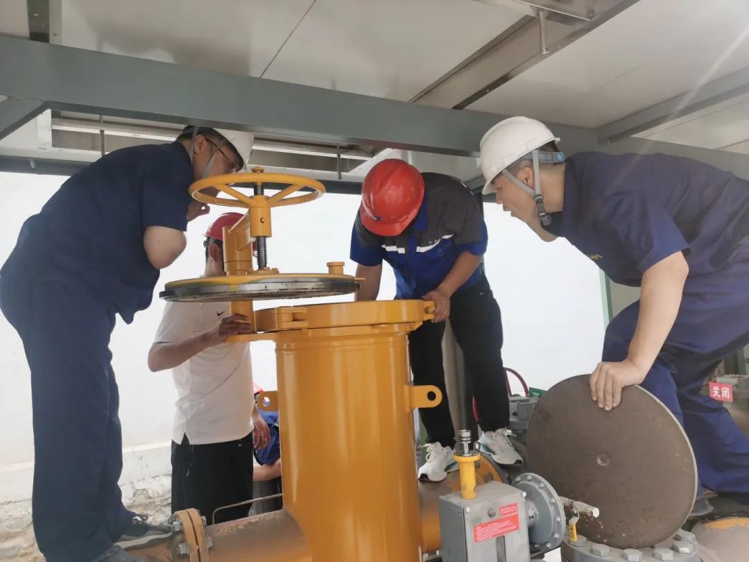 山東瑞福鋰業(yè)有限公司為泰山燃氣集團所屬肥城泰燃重點用氣企業(yè),為確保燃氣設(shè)施正常運行、更好地服務用戶、保證用戶安全穩(wěn)定用氣,公司積極與用戶保持良好溝通,在接到8月2日瑞福鋰業(yè)三期5米回轉(zhuǎn)窯、5.5米回轉(zhuǎn)窯臨時停爐檢修通知后,公司結(jié)合實際情況立即制定維保計劃,在泰山燃氣集團所屬綠能公司的積極配合下,組織相關(guān)部門聯(lián)合對瑞福鋰三期調(diào)壓撬、計量表具前置過濾器等供氣設(shè)施進行維護保養(yǎng)。通過各部門通力協(xié)作、分秒必爭,僅用時一個小時維護保養(yǎng)完成達到恢復供氣條件,確保了用戶安全正常用氣。